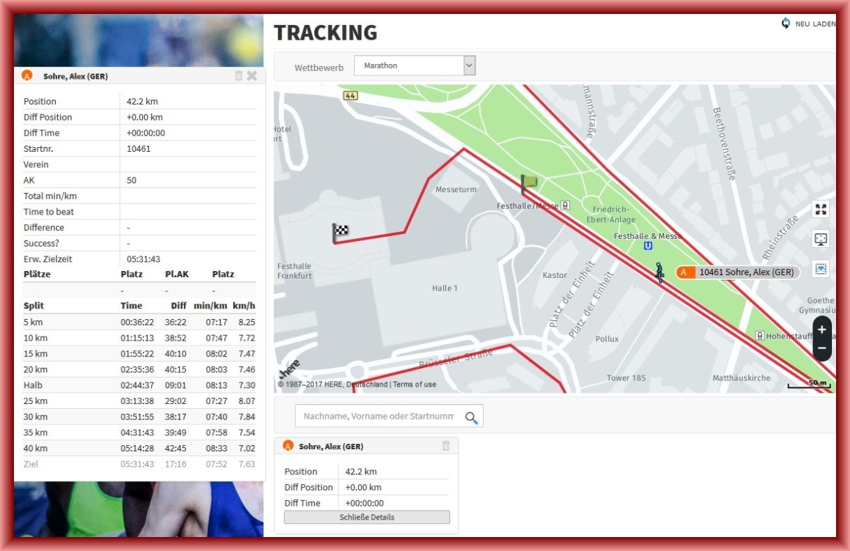 Norbert trackte mich im Internet - 30,66 km war ich da schon gelaufen